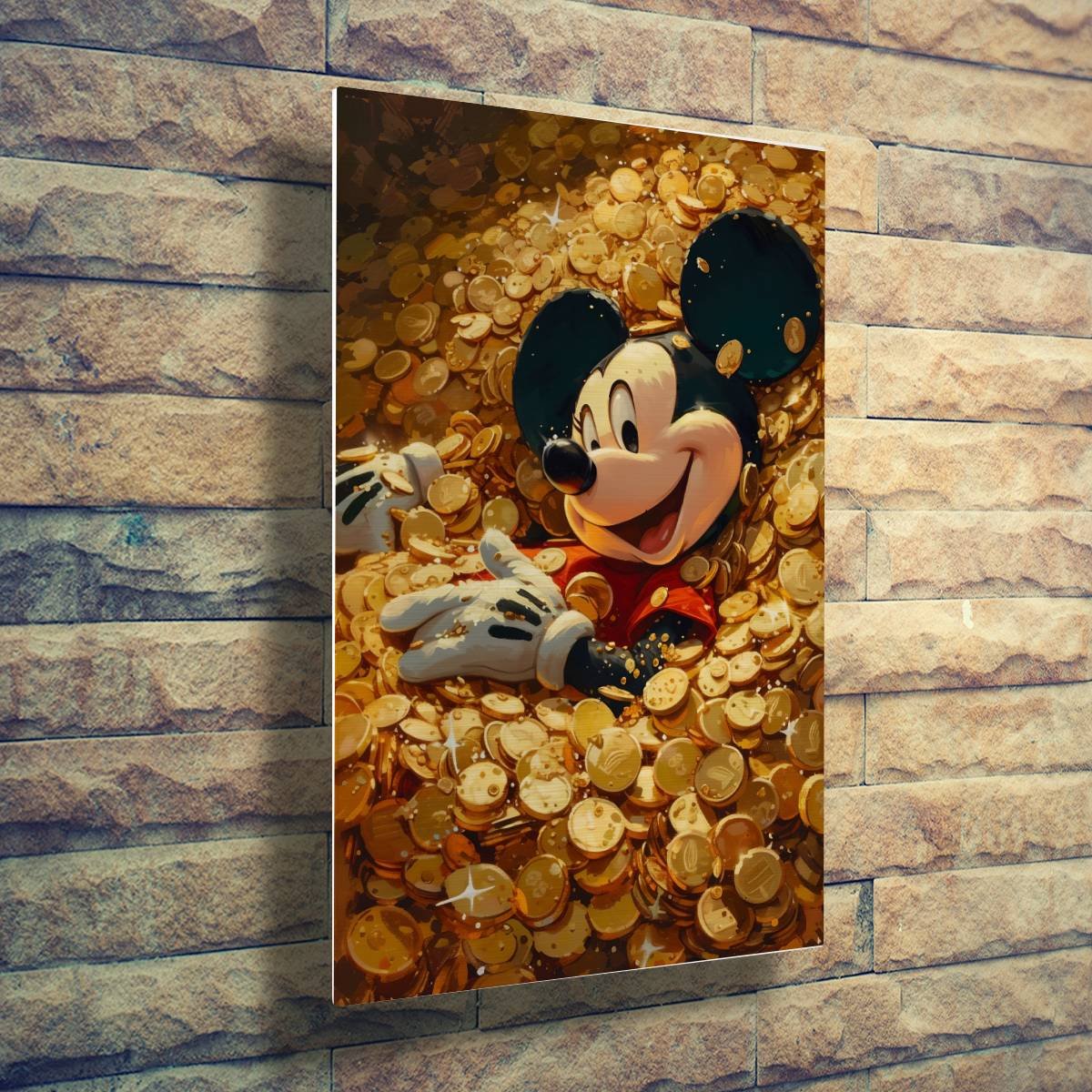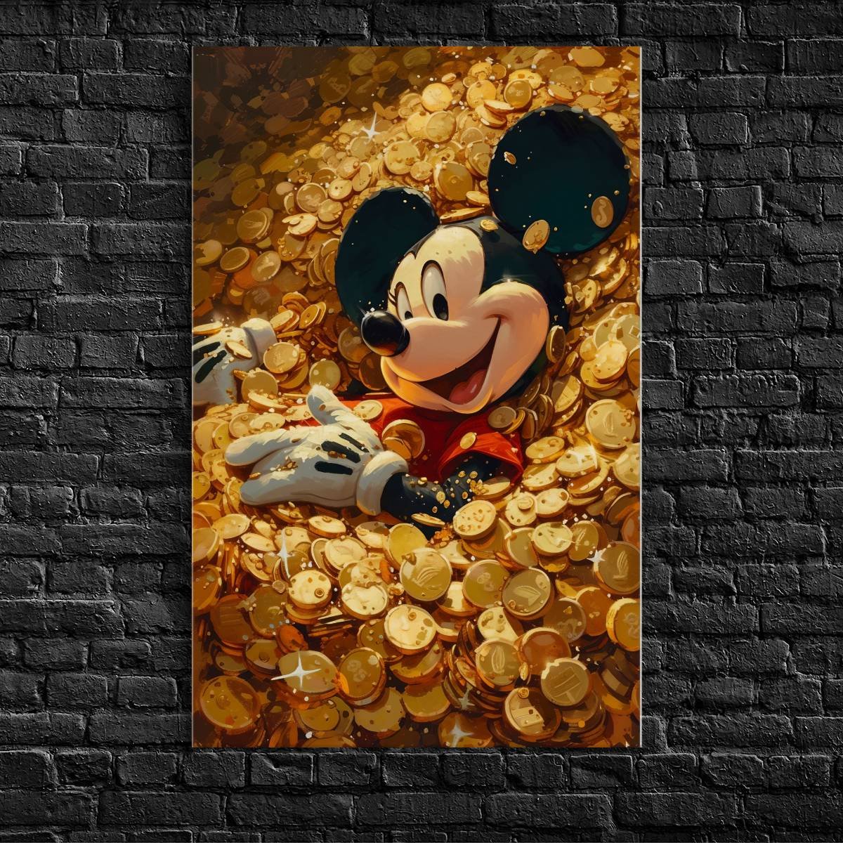 A “Miki Egér Pénzhalomban” alumínium kép Miki egeret ábrázolja, ahogy boldogan élvezi a pénzhalomban való fürdőzést. Ez a kép tökéletesen ötvözi a klasszikus Disney karaktert a modern popkultúrával, vidám és inspiráló hangulatot teremtve. Az alumínium anyag biztosítja a tartósságot és a kiváló minőséget, miközben a kép élénk színei és részletei hosszú időn keresztül megőrzik varázsukat. A kép mérete 30×45 cm, és ideális választás mindazok számára, akik szeretik Miki egeret és keresik a különleges, egyedi dekorációkat.