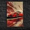 Bring the speed and style of modern cars into your home with this Iconic Wheels Aluminium Picture. The image depicts a stunning red sports car speeding at high speed against a blurred background, highlighting the dynamics and power of the car. The vibrant colours and rich detailing make this a true masterpiece. The picture measures 30×45 cm, which is perfect for any room wall, giving it a modern and elegant look. The aluminium material ensures long-term durability while preserving the vivid colours and details of the image. An ideal choice for any car enthusiast who appreciates modern design and speed.