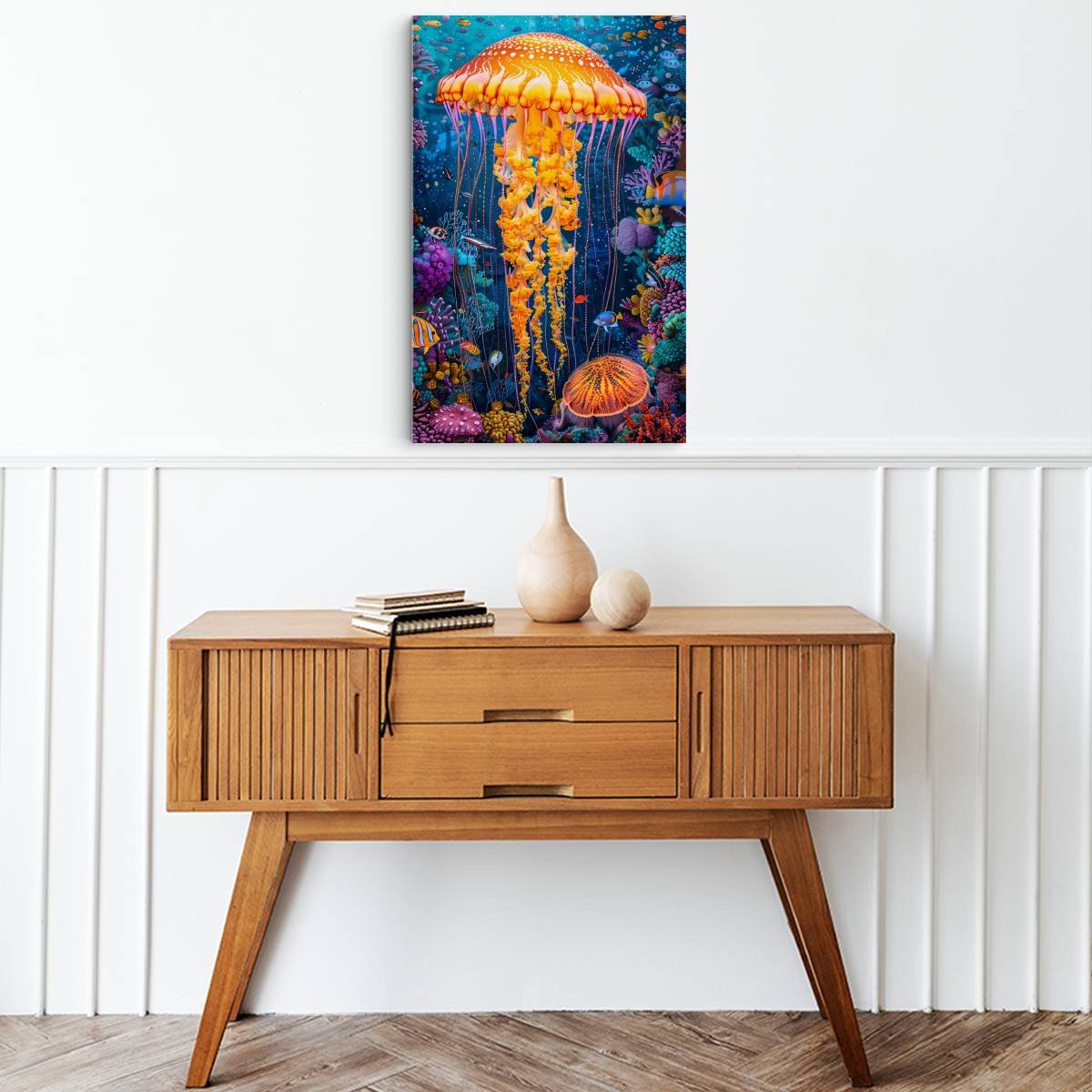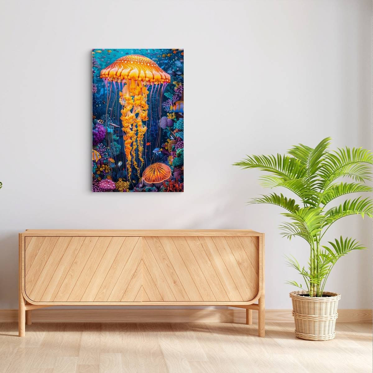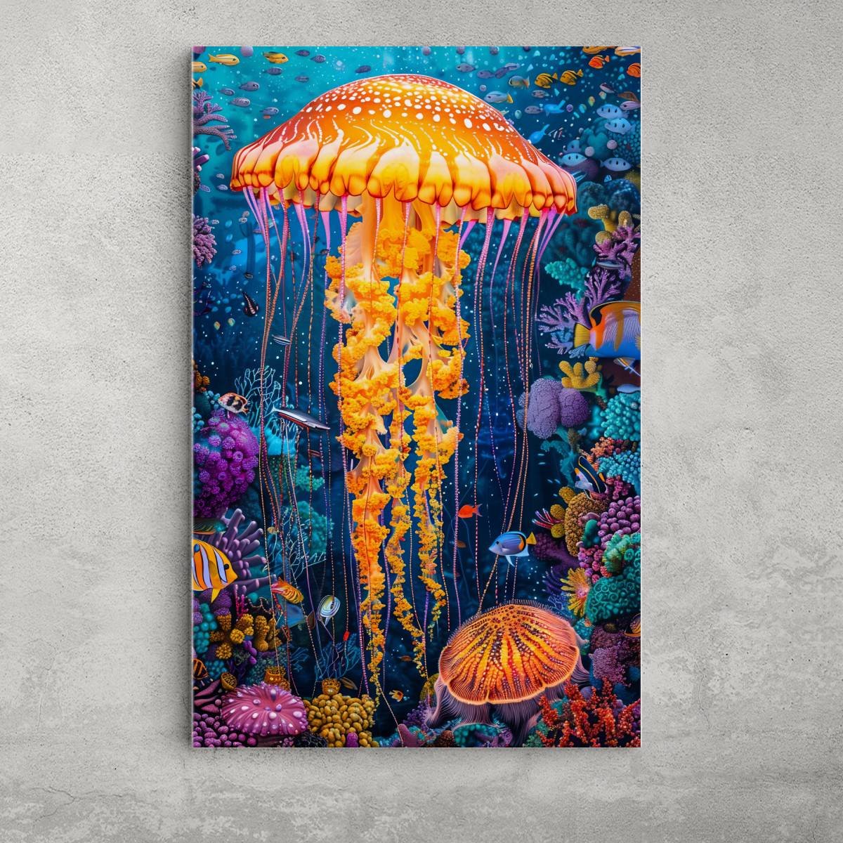 Discover the Psychedelic Water World Aluminium Picture, a stunning creation of the wonders of the underwater world! This unique image depicts the world of jellyfish and coral reefs with vibrant colours and rich detail. The 30×45 cm aluminium picture has a modern look and is made of durable material for a long life. It is the perfect choice for decorating any room, be it a living room, bedroom or office. Gift yourself or your loved ones with this unique piece of art that is sure to enchant everyone!